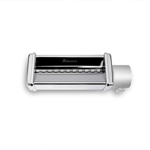 This pasta cutter (14.5cm) attaches to any Ankarsrum Assistent Original stand mixer to create consistent strands of fettuccine (6mm). The attachment is made by Marcato, a company that's been making top-quality pasta equipment in Italy for over 80 years (and a Borough Kitchen favourite). To use, prepare your pasta dough using the dough roller and dough knife. Then turn the machine on its side and use the lasagne pasta roller to produce sheets of pasta which can be adjusted for 6 different thicknesses (thicker pasta sheets are better suited to long pasta shapes). Once the pasta is in sheets, use this attachment to cut the pasta into fettuccine.