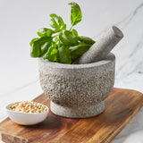 Made from premium natural granite, this Cole & Mason Langley Pestle & Mortar is ideal for making spice rubs, pastes, sauces, marinades, dressings, and dips. The interior of the mortar and the ends of the pestle are unpolished for excellent grinding and preparation of various foods, both wet and dry. The attractive polished exterior looks great on the countertop.
