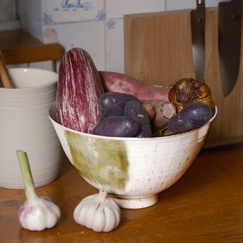 'Wonderful for salads or large dishes, this is for those who love handmade, unique ceramics that are made in the UK. Creative, artistic, and stylish, this bowl is a beautiful centrepiece or a lovely gift.'
