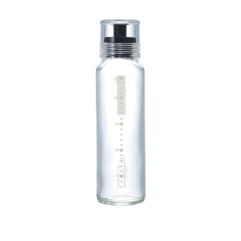 The helpful Hario Salad Dressing Bottle can be used for both measuring and serving. Made of high quality, heat resistant glass, it features metric measure marks on the side to guide you with portioning. The silicone pouring nozzle means there is minimal chance of mess when pouring and serving. Feel free to shake it vigorously; the tight cap prevents spillage.