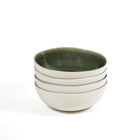 Established in 1857, Jars Ceramistes makes ultra-durable plates, bowls, cups, and serving pieces in distinct colours and shapes. They fire clay just once at the high temperature of 1280°C rather than the standard three times – an eco-friendly practice that results in hard-wearing ceramics that resist cracking, chipping and fading. They hold up to frequent microwave and dishwasher-use, even in professional kitchens. Their Maguelone range is a Borough Kitchen favourite, with windswept edges and 'crackled' non-porous glazes in soft colours that look lovely when mixed and matched. This set features four dinner plates (26.5cm), four pasta bowls (23cm), four side plates (20cm) and four soup/cereal bowls (16cm). These pieces should not be placed in the oven above 150°C.