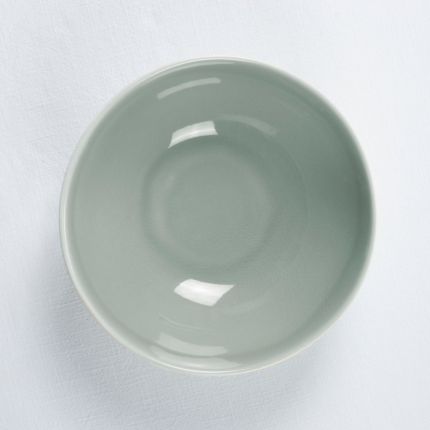 Established in 1857, Jars Ceramistes makes ultra-durable plates, bowls, cups, and serving pieces in distinct colours and shapes. They fire clay just once at the high temperature of 1280°C rather than the standard three times – an eco-friendly practice that results in hard-wearing ceramics that resist cracking, chipping and fading. They hold up to frequent microwave and dishwasher-use, even in professional kitchens. Their Maguelone range is a Borough Kitchen favourite, with windswept edges and 'crackled' non-porous glazes in soft colours that look lovely when mixed and matched. This medium-sized (23cm) serving bowl is a wonderful piece for both entertaining and everyday use at home.