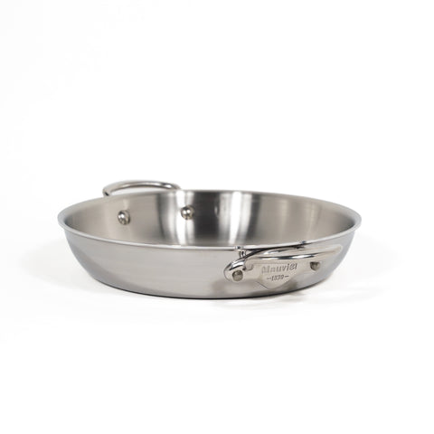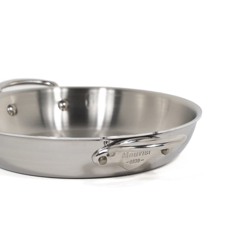 The Mauviel M'Cook Frying Pan is no ordinary pan. It is made of five layers of metal (two layers of stainless steel and three layers of heat-responsive aluminium in the centre), which extend to the sides and tops of the pans to ensure even heat distribution. Suitable on all hobs including induction, the M’Cook range’s comfortable handles and curved edges allow easy manoeuvring and pouring. This model is designed to fit in the oven comfortably. The exterior is polished but the interior is brushed, making it stick-resistant and easy to clean.