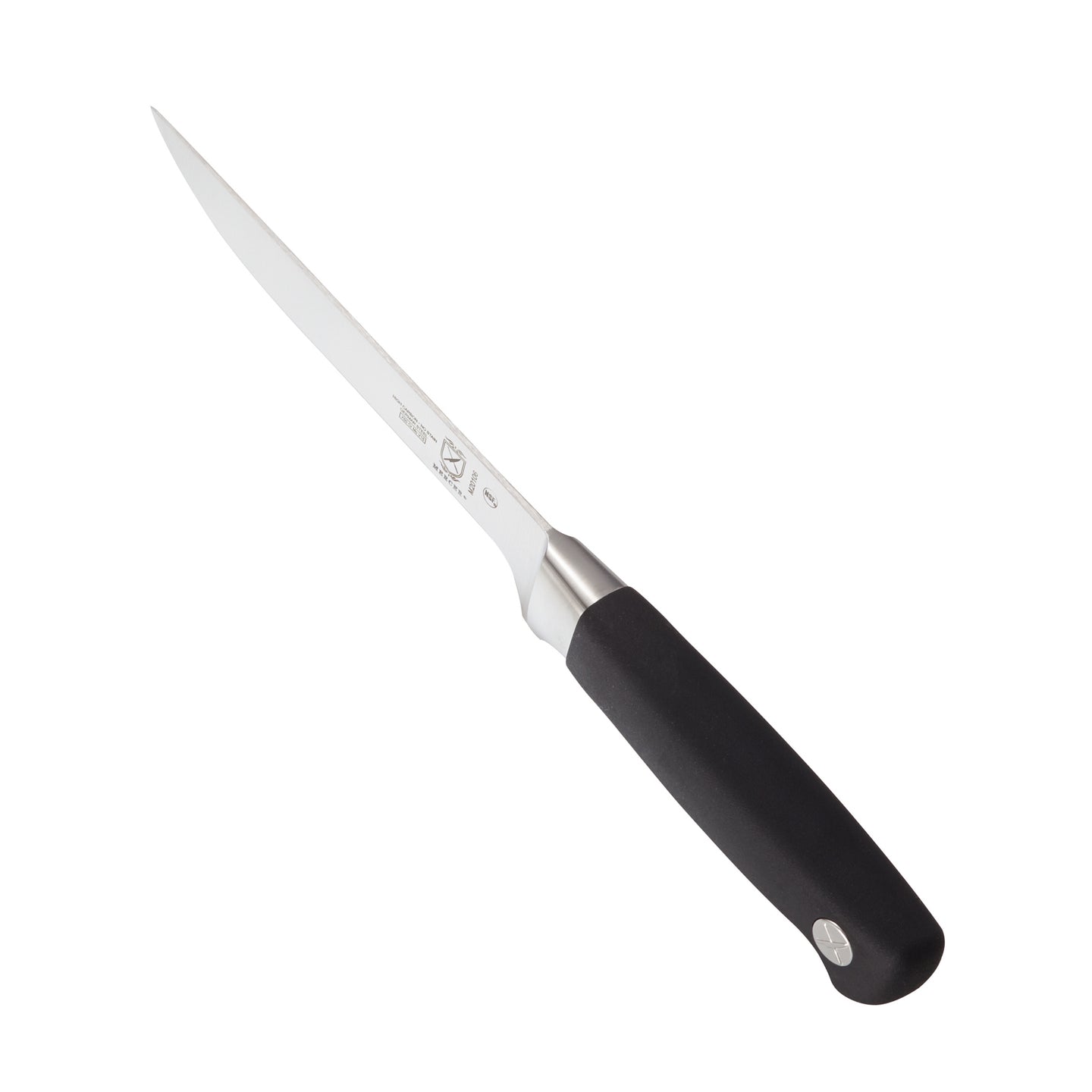 'This flexible knife can withstand the impact of meat bones and hard tissue without chipping, thanks to robust German steel. This also makes it ideal for mangos, avocados, and other fruit with hard seeds.'