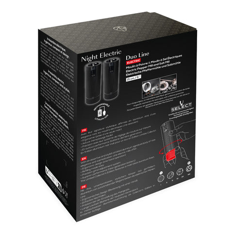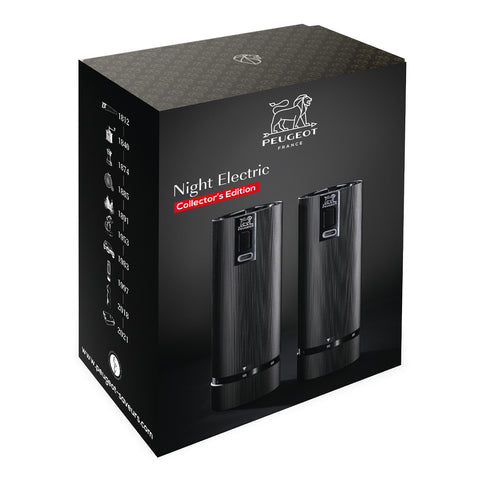 This Electric Salt & Pepper Mill Set from Peugeot is gorgeously suited to any table with a black matte finish and contemporary, modern design. The mills feature Peugeot's patented u’Select grind control system allowing for precise adjustment of coarseness as required in six graduations. Featuring recessed grooves along their exterior, the mills are designed for the perfect grip and are comfortable to hold. Powered by lithium-ion batteries that are rechargeable via USB.