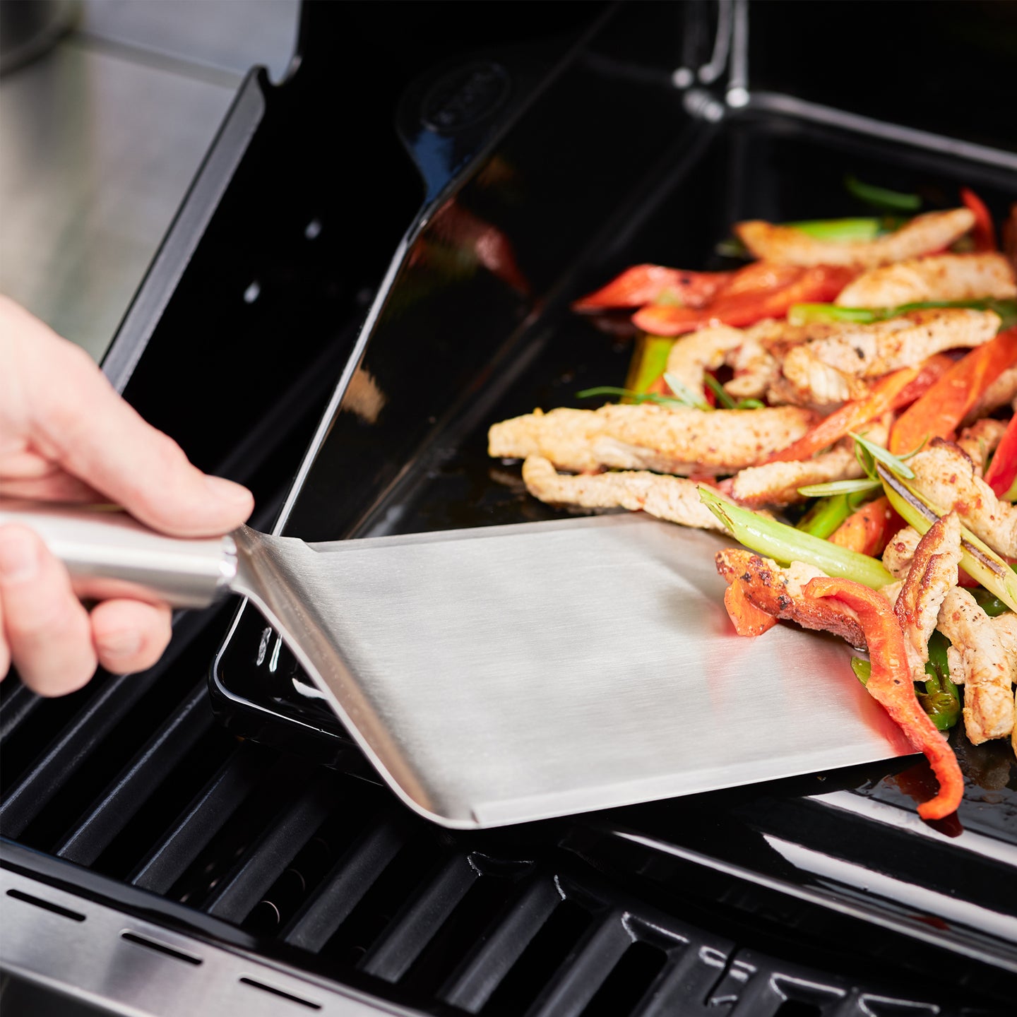 Rosle products are designed with functionality in mind, and are manufactured from the highest quality materials to ensure a lifetime of service. This Plancha Scraper is made from 18/10 stainless steel and features a hanging ring for easy storage. The wide spatula is useful for turning fish, pancakes, fried eggs, or anything with a large surface area, while the narrow spatula is great for turning and mixing meat, vegetables, fruit, and anything with a smaller base. The two sizes can also be used together to scoop up and mix ingredients.