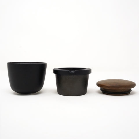 Skeppshult have crafted hand-forged cookware in Sweden since 1906. Using entirely natural iron, each piece is completely unique and built to last a lifetime. This Skeppshult Swing Spice Mill is handmade from solid cast iron and easily grinds dry herbs and spices. Featuring a swing walnut lid, the mill has a top compartment for spice storage, and the lid is fitted with a silicone seal to keep contents fresh. The spice mill is small enough to comfortably sit in your hands, so that you can achieve a finer grind by using both hands. Intended for dry spices only, the seasoned cast iron only gets better with time and use. The interior is seasoned with organic Swedish canola oil, and the exterior is coated with black lacquer to prevent staining.