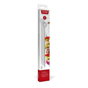 These stainless steel skewers from Triangle feature very sharp tips to assist the threading of vegetables, prawns or chunks of meat. The diamond-shaped cross-section keeps ingredients securely fixed to the skewers, stopping them from 'hanging' off the skewer so you can ensure even charring. Pack of 6.
