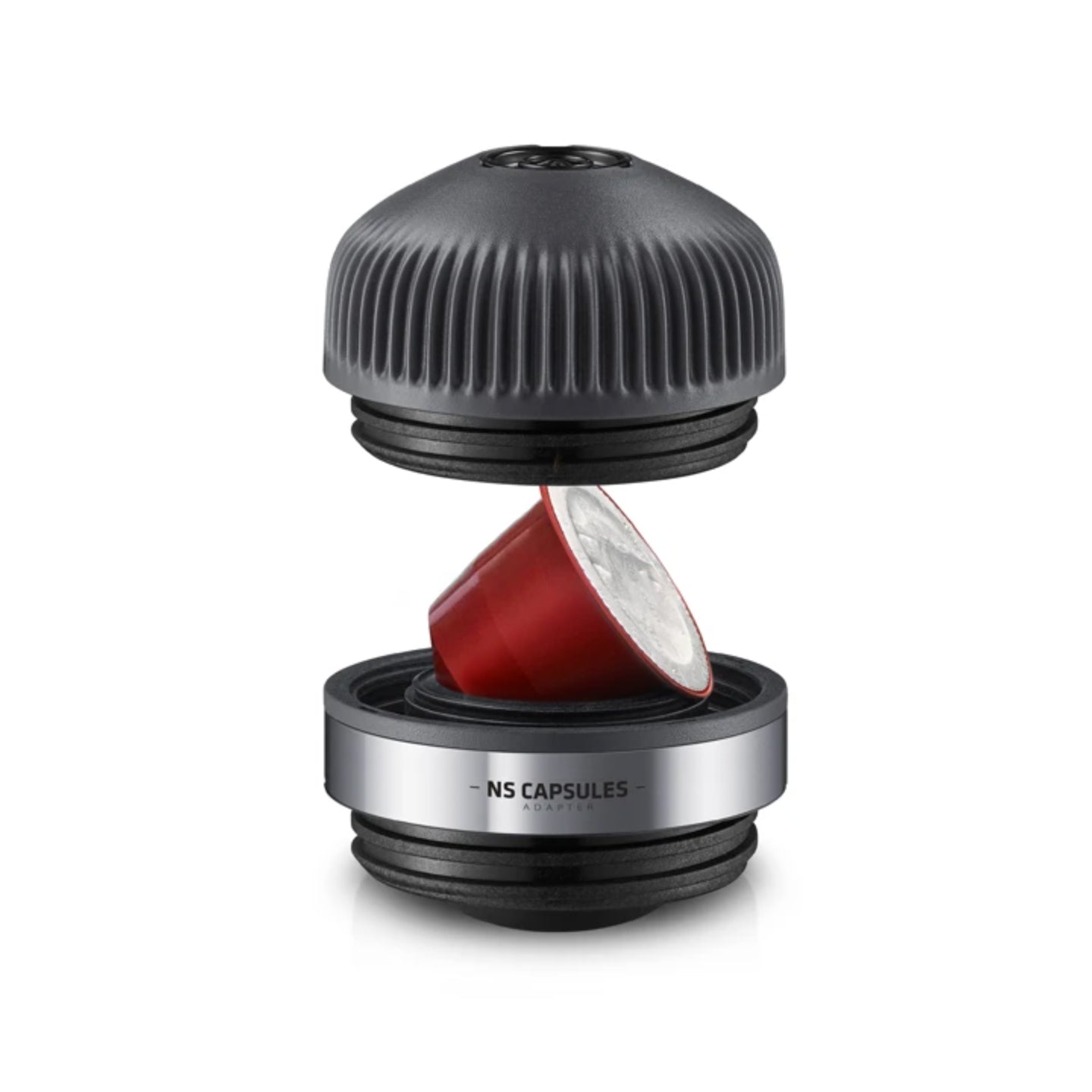 This Wacaco NS Adapter allows you to use Nespresso Original capsules, and other similarly shaped coffee capsules, in your Nanopresso. With this method there is little room for error and will enable you to prepare a convenient, mess-free, consistent espresso on-the-go every time. To use, simply affix the adaptor to your Nanopresso between the middle body and the top portafilter, add the capsule, close, and use the machine as you would normally.